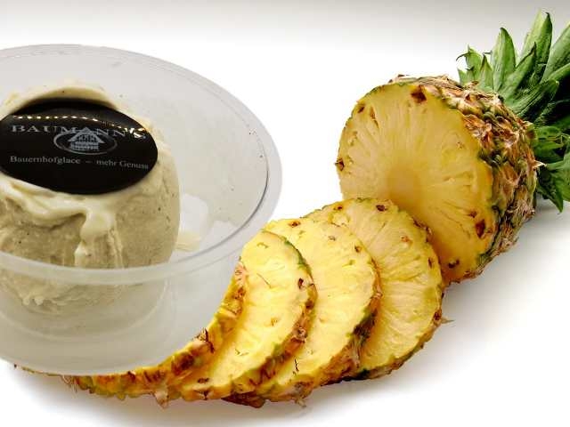 Zutaten: 41.21% Ananas, Wasser, Zucker, Orangensaft, Glukosesirup, Dextrose, Zitronensaft, Fruktose, Verdickungsmittel (Pektine, Johannisbrotkernmehl), Tiefgekühlt aufbewahren bei min.-18°C