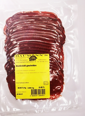 Schweizer Fleischerzeugnis zum Rohessen Zutaten: Rindfleisch, Kochsalz, Gewürze, Milchzucker, Traubenzucker