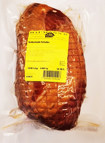 Schweizer Fleischerzeugnis zum Gekochtessen, geräuchtZutaten: Schweinefleisch, Nitritpökelsalz (Kochsalz, Konservierungsmittel E250), Maltodextrine, Milchzucker, Traubenzucker, Zucker, Gewürze, Säuerungsmittel: E331, E262, Würze, Antioxidationsmittel:
