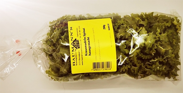 Zutaten:Hartweizengriess, Freilandeier, Spinat 4%Kühl und trocken aufbewahren