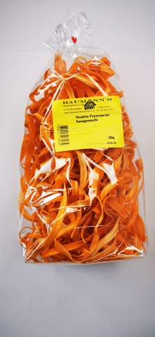 Zutaten:Hartweizengriess, Freilandeier, Peperoncinipulver 0.5%Kühl und trocken aufbewahren