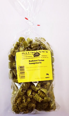Zutaten:Hartweizengriess, Freilandeier, Spinat 4%Kühl und trocken aufbewahren
