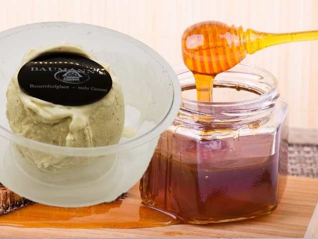 Zutaten: VollMILCH, RAHM, EIgelb, Glukosesirup, Honig 12%, Dextrose, Zucker, MagerMILCHpulver, Fruktose, Verdickungsmittel (Johannisbrotkernmehl), Salz, Tiefgekühlt aufbewahren bei min.-18°C