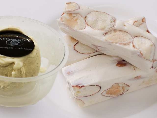 Zutaten: VollMILCH, EIgelb, RAHM, 8.93% Nougatpaste (Zucker, natürliche Aromen, Pflanzliches Öl (Sonnenblume), LAKTOSE, MILCHeiweiß, Nougat, Gehärtetes Kokosnussöl), Glukosesirup, Zucker, Dextrose, MagerMILCHpulver, Fruktose, Verdickungsmittel (Johannisbrotkernmehl) Salz, Tiefgekühlt aufbewahren bei min.-18°C