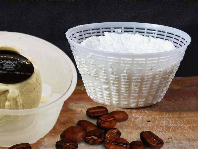 Zutaten: VollMilch, EIgelb, RAHM, Glukosesirup, 8.68% Ricotta (KÄSE)paste , Kaffeetopping 2%, Tiefgekühlt aufbewahren bei min.-18°C