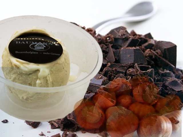 Zutaten: VollMILCH, EIgelb, Dextrose, 8.93% Schokolade-HASELNUSS-Paste (raffiniertes Pflanzenfett (Palm, Sonnenblume, Raps), geröstete HASELNÜSSE, entöltes Kakaopulver 10-12%, Emulgator (SOJAlecithin), RAHM, Zucker, Glukosesirup, MagerMILCHpulver, Fruktos, Tiefgekühlt aufbewahren bei min.-18°C