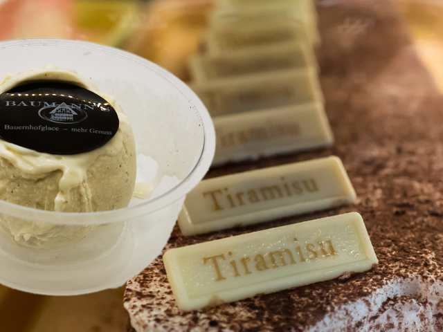 Zutaten: VollMILCH, EIgelb, RAHM, 8.20% Tiramisupaste (Invertzuckersirup, Glukosesirup, Marsalawein (DOC) ALKOHOL, Zucker, Mascarpone (KÄSE), gefriergetrocknetes Kaffeepulver, Verdickungsmittel (Carrageen)), 8.20% Kaffeesoße (Glukosesirup, Wasser, Karamel Tiefgekühlt aufbewahren bei min.-18°C